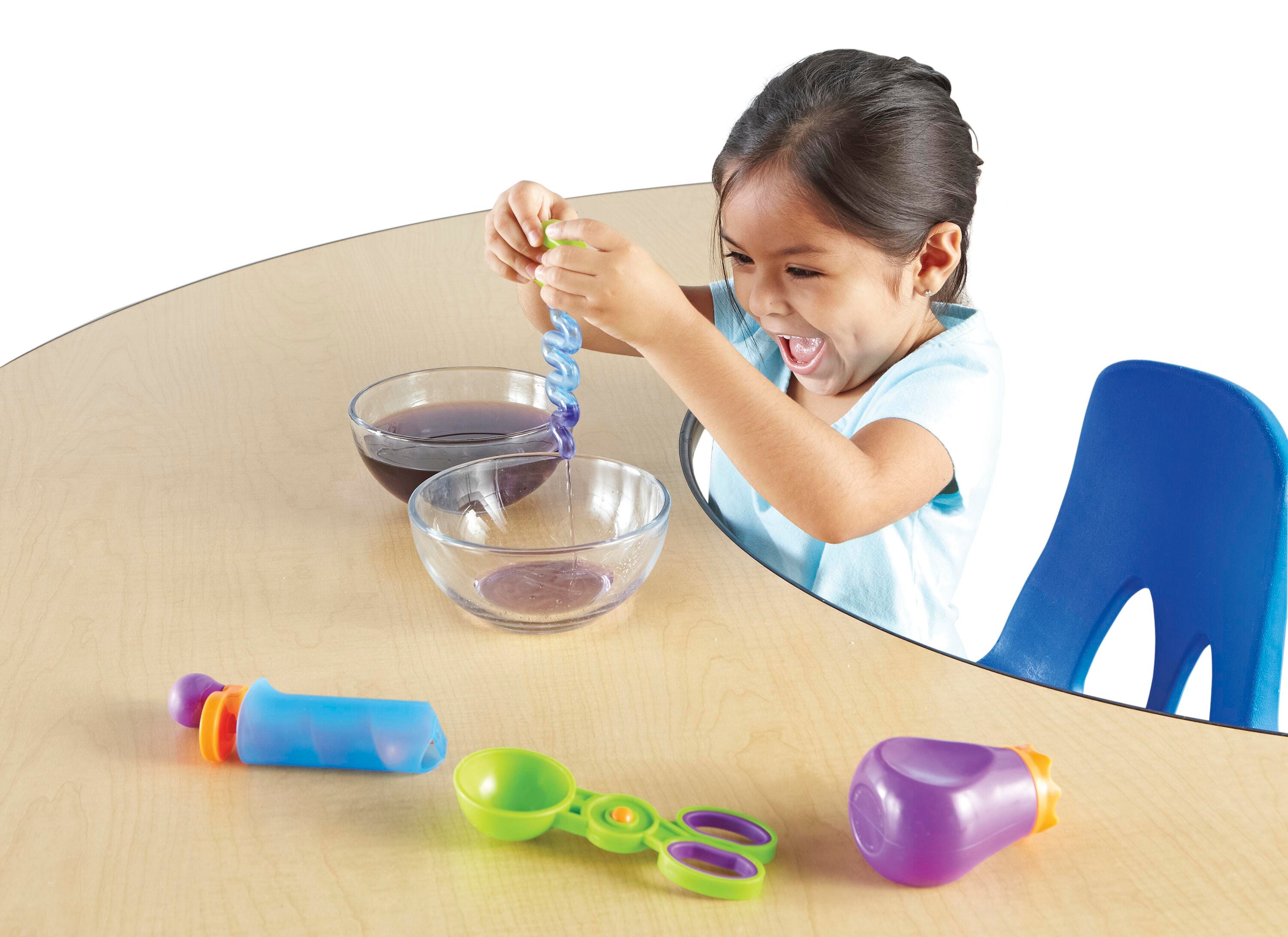 Includes 4 new tools perfect for sand and water play! Each tool demonstrates a different physical concept through fun, easy-to-understand interactive play. Made of durable plastic, these tools are tough enough to accompany kids wherever water or sand is found. Focuses on strengthening the hands, arms, and core muscles. Great for water and texture tables, the bath and the beach. Ages 3 and up.