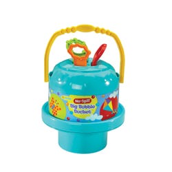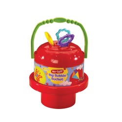 Three children can create bubbles. Fold down handle. 9.5"H (24cm) x 8"W (20cm). Tip it, or turn it upside down and it will not spill! Assorted colors. Mouth / Language / Breathing Solution Sold as Single Unit Designed by experts, perfect for use at home or the classroom Short Name: Bucket No Spill Big BubbleFeatures