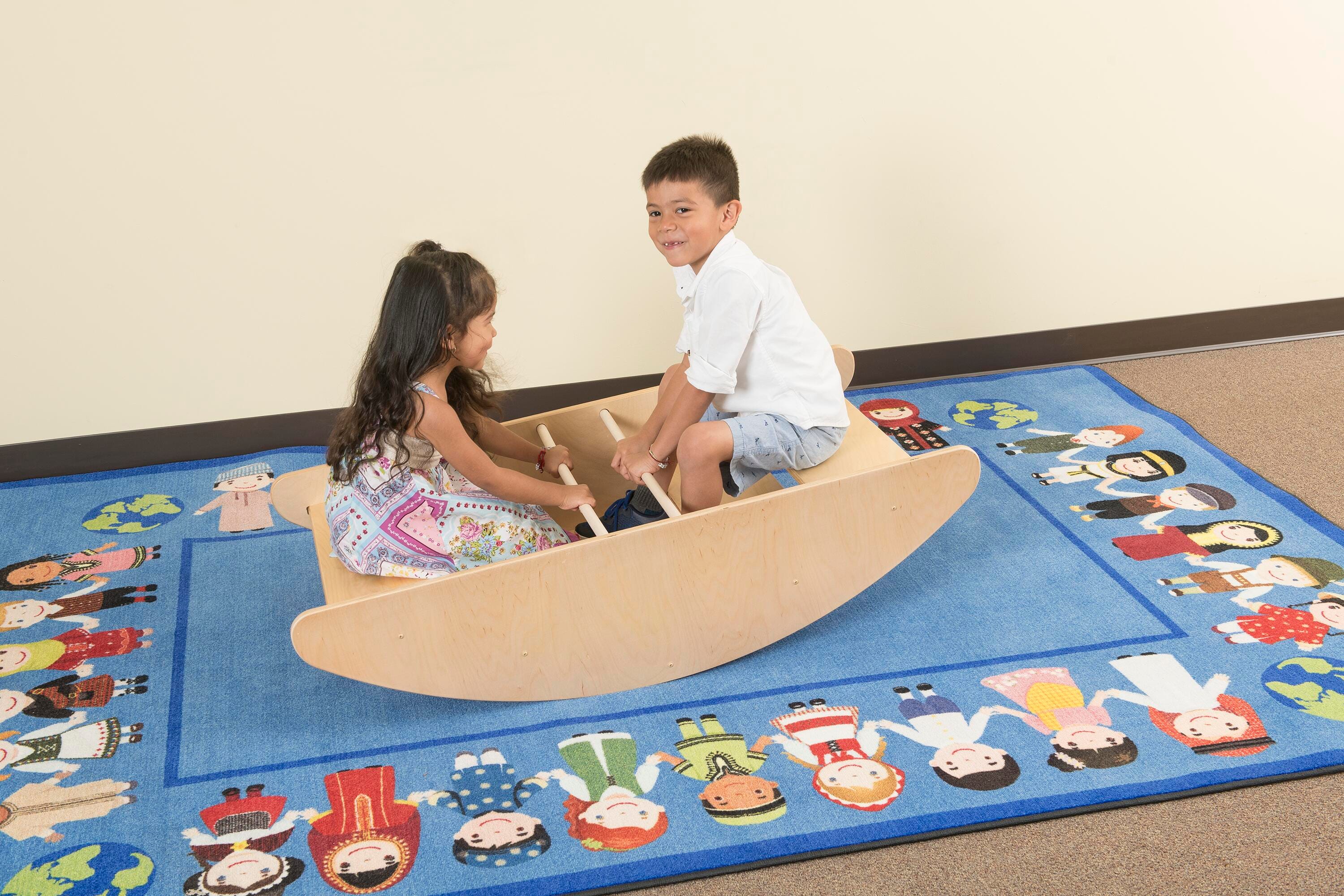 Childcraft® Wood Rocking Chair Boat and Steps is a versatile early childhood play piece that serves as both a rocking boat and a set of climbing steps. When placed curved side down, it becomes a fun and engaging rocking boat, perfect for two children to enjoy together. Flip it over, and it transforms into a short climbing set with a sturdy middle base for added support. This dual-purpose design encourages gross motor development, balance, and imaginative play. Built with durable hardwood construction and smooth, rounded edges, the rocker ensures safe and long-lasting use in early childhood classrooms, playrooms, and childcare centers. Assembly required. Measures 46-1/8 W x 24 D x 11-1/2 H inches. Recommended for ages 2 to 6 years old.Features