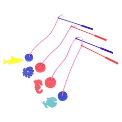 Edushape Fish 'N Fun offers hand-eye coordination and vocabulary practice as children fish for fun foam creatures! Toss the foam sea creatures into the water, attach the wet-and-stick bait to your line, and see what you can catch. This fun fishing game allows you to spell almost any word. The game can be played indoors or out, and the four included fishing rods allow several children to play at once. Encourage social skills and taking turns with this game that can be adapted to any skill level. Includes 4 plastic fishing rods with 8 foam fishing lines, 8 foam 'bait' pieces, and 36 foam fish in assorted colors. For ages 3 years and up.Features
