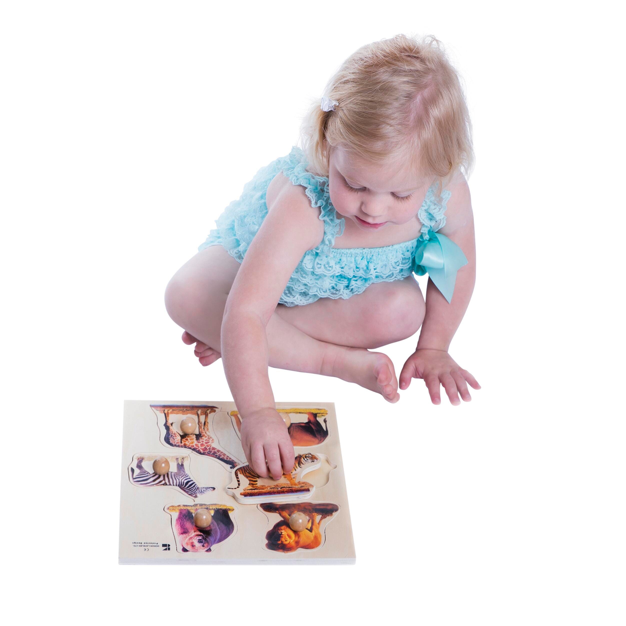 Edushape Large Knob Puzzle, Wild Animals Theme, 6 Pieces