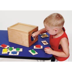 The Childcraft® Wonder Box and Tactile Assortment Set provides a fun and interactive way for children to develop matching, fine motor, and cognitive skills. Children can pick one of 22 wooden tiles in the sensory box, study the 2-D outline, and then reach into the wonder box to find the matching 3-D shape. This hands-on tactile learning set is perfect for early childhood classrooms, sensory stations, and home learning spaces. The durable wooden box features dado construction and an eco-friendly 4-coat UV acrylic finish for lasting use. Suitable for children ages 3 and up.Features