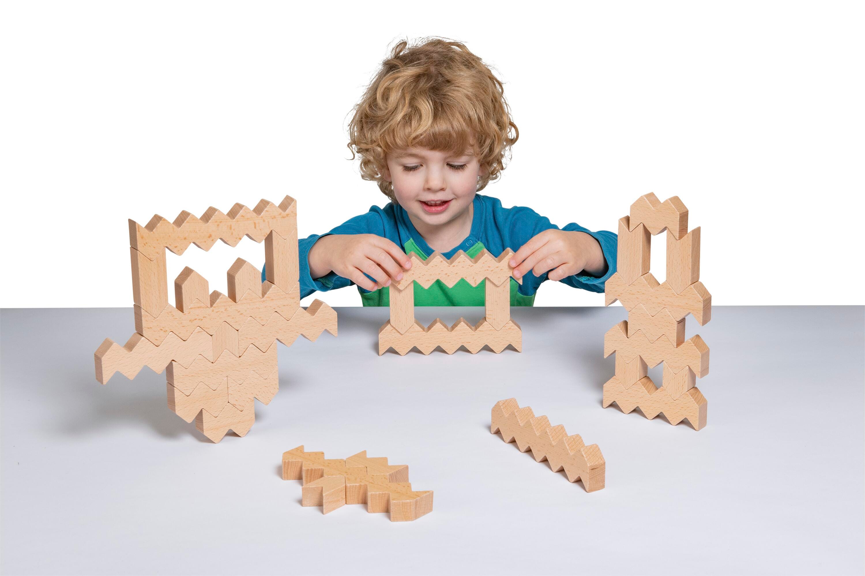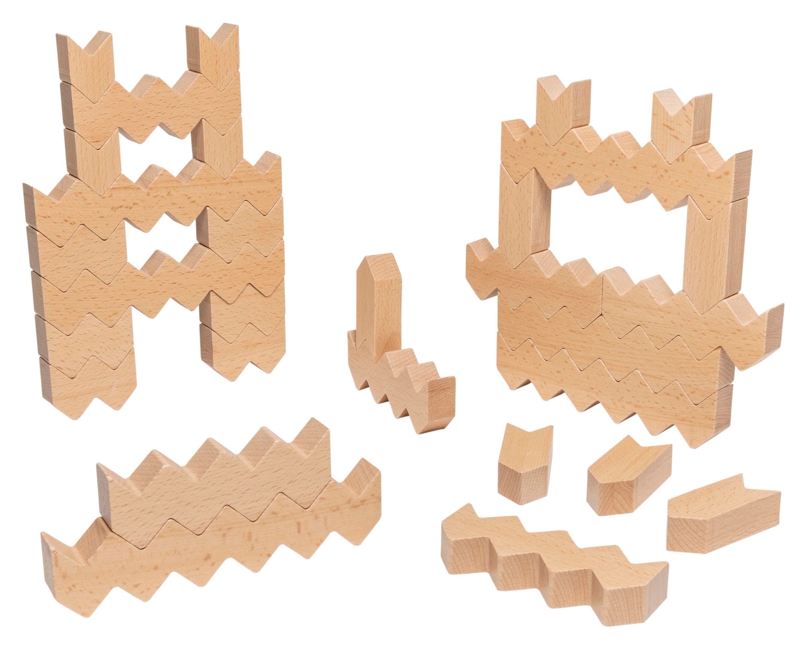 Stack, build and create with this fantastic 30 piece open-ended set! This set includes 6 different shapes including a spacer piece to add increased height to your models. Promotes imagination and logical reasoning skills. Children will work out the right way to stack and build their creations. Each piece measures 2cm in width. Largest piece measures 17 x 2.4cm. Age: 3+.