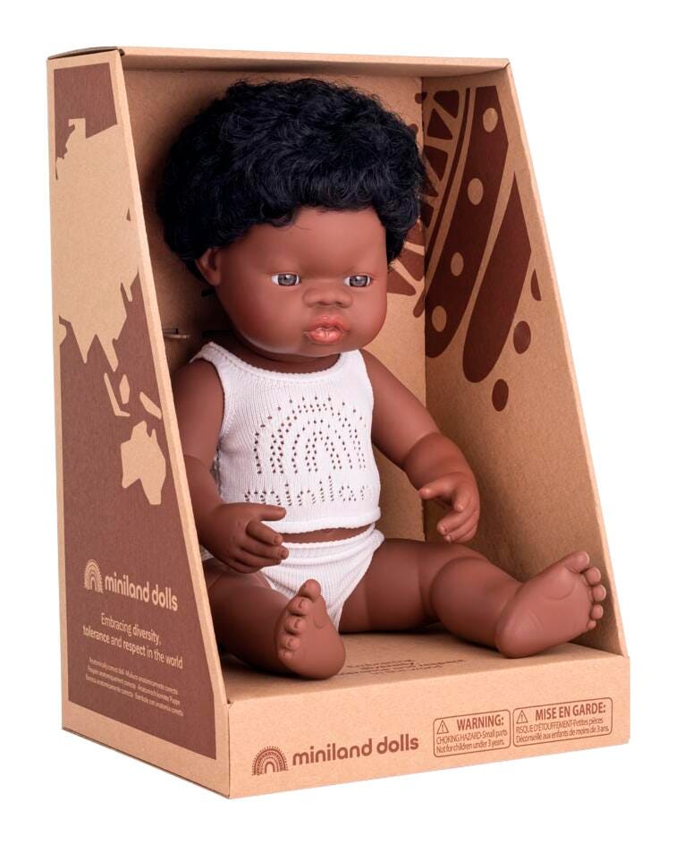 Miniland Multicultural Doll, African American Boy, 15 Inches