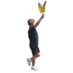 Six inch diameter “wide mouth” Baskets make all kinds of catching, tossing, balance, and cooperative games possible. Five inch long handles keep the hands close to the Basket basin for easy control and feel. Remove the handles and use the Baskets for stacking, ground targets, balancing or even storage. Each set also includes six free scooter arms that snap on to all square handled scooters. This accessory transforms your scooters into rolling game.Features