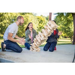 Don't be the last to take a block and watch the stack come tumbling down. A great classic game that when stacks has a height of 22-1/2 inches. Comes in a storage bag for easy transportation. The giant blocks are 6 x 2 x 1-1/4 inches and made of New Zealand Pine Wood. Comes with 54 blocks.Includes: