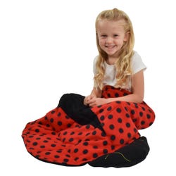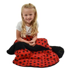 Abilitations Fleece Weighted Ladybug Blanket is a comfortable and whimsical weighted ladybug blanket that is ideal for applying deep pressure during the day or while resting. Using weight to offer proprioceptive input may be effective for those with autism spectrum disorders, sensory processing issues and other neurological challenges. The luxurious fleece fabric is soft to the touch, yet durable enough for everyday use. Use with supervision for 20 minutes at a time or as recommended. May be cooled in the freezer and warmed in the dryer. It should never go in the microwave. Filled with plastic pellets in a quilted pattern to provide even weight distribution and to prevent weight shifting. Surface wash only. Air dry. Measures 30 L x 40 W x 2 H inches and weighs 4 pounds. For children 4 years and older with adult supervision.Features