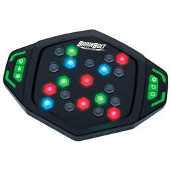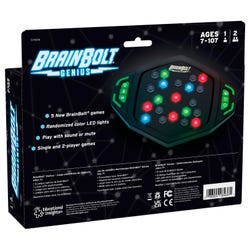 The BrainBolt® Genius from Educational Insights is a handheld game designed to supercharge your memory! Watch as up to 21 colored lights flash at random, then challenge yourself to repeat the patterns without missing a beat. Five new genius levels, randomized patterns, and solo or head-to-head modes make this portable hand-held brainbender the perfect way to play; at home, in the classroom, or on the go! It's addictive, puzzle-playing fun for players of all ages.Features
