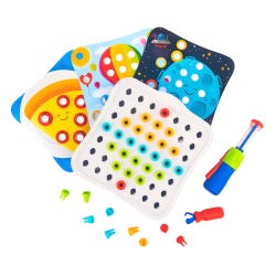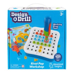 Pop into early learning! Design and Drill Rivet Pop Workshop includes a storage case activity board, rivet popper, rivet remover, 40 colorful rivets, and ten double-sided pattern cards.At Educational Insights we've been helping kids learn through play for the last 60 years. We take great pride in working with experts in many distinct fields—from scientists to teachers to artists—to ensure that our products are always the very best they can be. Our award-winning, best-selling toys and games introduce new interests, unleashing limitless possibilities and passions including Coding Critters, Hot Dots, Design & Drill, Playfoam, GeoSafari, Kanoodle, and BrainBolt.