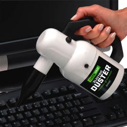 Electric duster is specifically designed to clean dust and dirt from electronics, computers, audio/visual equipment and digital camera equipment. It has a high power blower with a .75 peak horsepower motor and a single stage fan. Duster is earth-friendly and made from high quality steel with up to 70% recycled content.