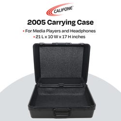 Califone helps to protect your investment in audio equipment with this rugged storage case. Made with a durable black polypropylene shell and internal foam padding, it will help keep your multimedia players, headphones and other portable audio equipment safe and organized between uses. Protective outer shell resists marring and scratching, while opposing outer clasps prevent accidental opening. Foam-lined interior protects multi-media gear, cassette players and recorders, CD players and headphones. One year warranty for school use - unlike items purchased from consumer electronics stores whose warranties would be voided if used in schools. Measures 21 W x 10 D x 17 H inches.Features
