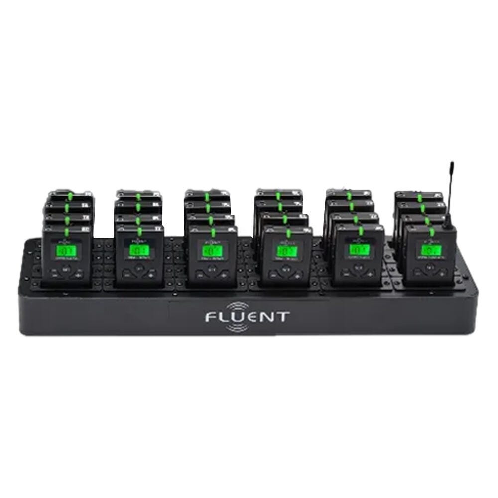 Outstanding digital audio is transmitted from a small, lightweight wireless audio system. The Fluent Audio 900MHz Compact system combines a small package with outstanding features. Incorporating a new digital design with robust interference rejection, the FA-900MLITG system utilizes built-in switching diversity antennas to provide a more reliable and secure transmission of the FM signal. The transmitter broadcasts a high-quality one-way audio signal to an unlimited number of receivers. This system is ideal for indoor or outdoor tours, great for schools, museums, government agencies, houses of worship, tour companies, and businesses.Features