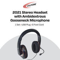 Califone 2021 Stereo Headset with Ambidextrous Gooseneck Microphone, USB Plug