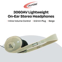 Califone 3060AV Lightweight On-Ear Stereo Headphones, Inline Volume Control, 3.5mm Plug, Beige
