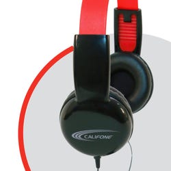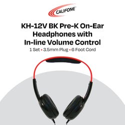 Califone KH-12V BK Pre-K On-Ear Headphones with Inline Volume Control, 3.5mm, Black/Red