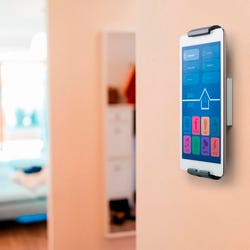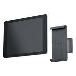 Use Wall-Mounted Tablet Holder for many applications, including displaying tablets for information purposes at trade fairs, office areas and sales/exhibition rooms. Low-key design enables unobtrusive, flat wall-mounting. Easy-to-use design allows you to quickly insert and remove your tablet. Rotatable design offers snap-in points at every 90 degrees for portrait or landscape viewing. Aperture in the holder serves as charging cable outlet for the tablet. Variable fit accommodates all tablets from 7" to 13".Features