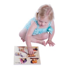- Each puzzle piece fits into one correct slot for practicing sensory and visual object recognition and placement