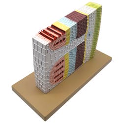 Key features of the rendering of a dicot stem section are colored and numbered for comparison with the key that is included. This model provides a visually and kinesthetically effective method for studying the structure and function of the various structures of a dicot stem. The model is mounted on a sturdy ABS plastic base for display.Features