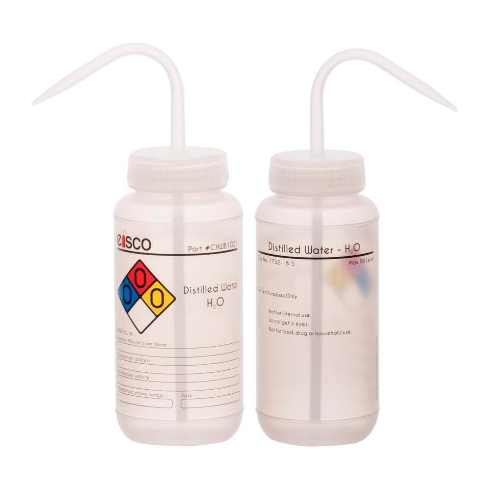 Each empty wash bottle is labeled for Distilled Water and features chemical information as well as hazard and safety information. Wide mouth for easy refilling. Clear leak proof cap with built in nozzle included. Self venting design eliminates leaks & dripping. The low density polyethylene plastic is very responsive, with smooth bounce back that won't get stiff over time. Easy to control squeeze for dispensing. 500ml capacity.