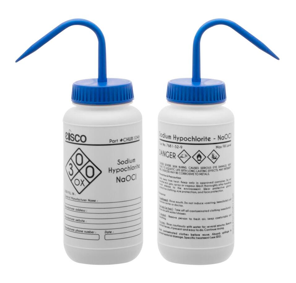 Eisco Labs Sodium Hypochlorite Wash Bottle (Bleach), 500 mL, LDPE