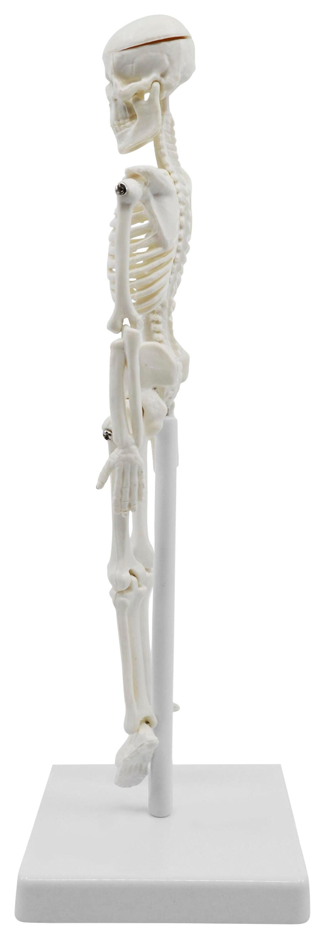 The Eisco Miniature Human Skeleton Model includes a rod mount and stand for display and makes an interesting desk ornament for any teacher, professor, doctor or student. Features movable joints and removable skull cap. Arms and legs are attached by threaded studs and nuts, allowing you to adjust their flexibility.Features