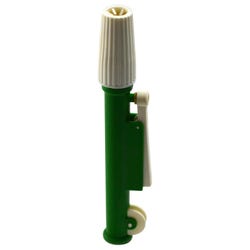 This Green fast-release pipetting pump device with 10 milliliter (mL) capacity offers precise pipetting and super-fast emptying with a simple touch! The knurled thumb wheel can be rotated to draw up or dispense liquids, while the releaser may be pushed in for zip-quick emptying. The molded chuck has a silicon rubber collect inside to hold various pipettes of standard sizes. Entire pipette pump also resists acids and alkalis, and can be quickly assembled for thorough cleaning.
