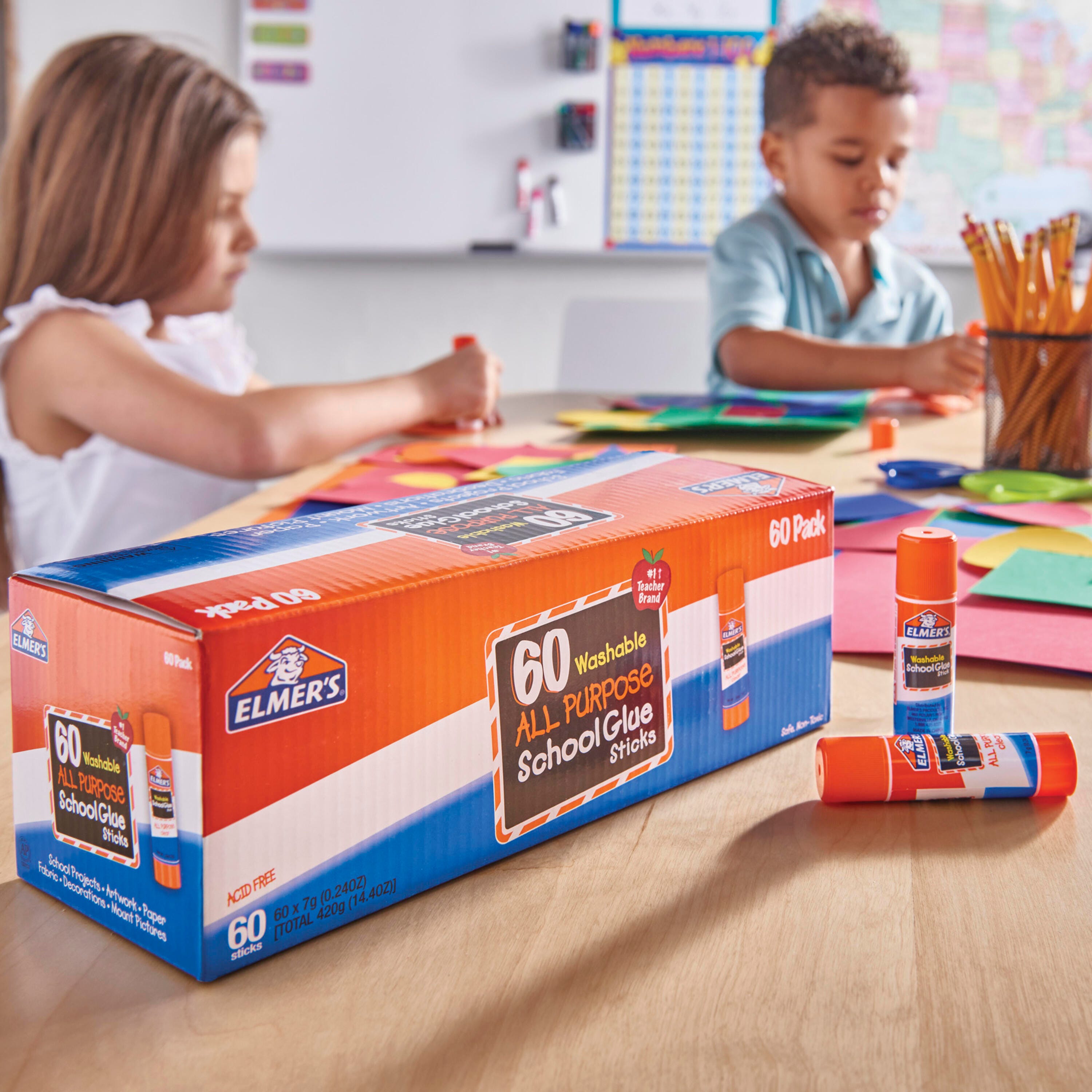The Elmer's School Glue Sticks are trusted for no-mess bonding during any project. The glue delivers smooth application and dries clear for a neat and clean finish. The reliable glue formula is non-toxic, acid-free, and firmly bonds to common craft materials like paper, cardboard, foamboard, felt, and more. This pack includes 60 glue sticks that are 0.24 ounces each.Features