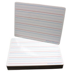 Make writing practice feel fun and interactive with 2-sided dry erase boards featuring one side with ruled lines! Set of dozen whiteboards conveniently comes with erasers and assorted colored whiteboard markers for shared activities in the classroom.