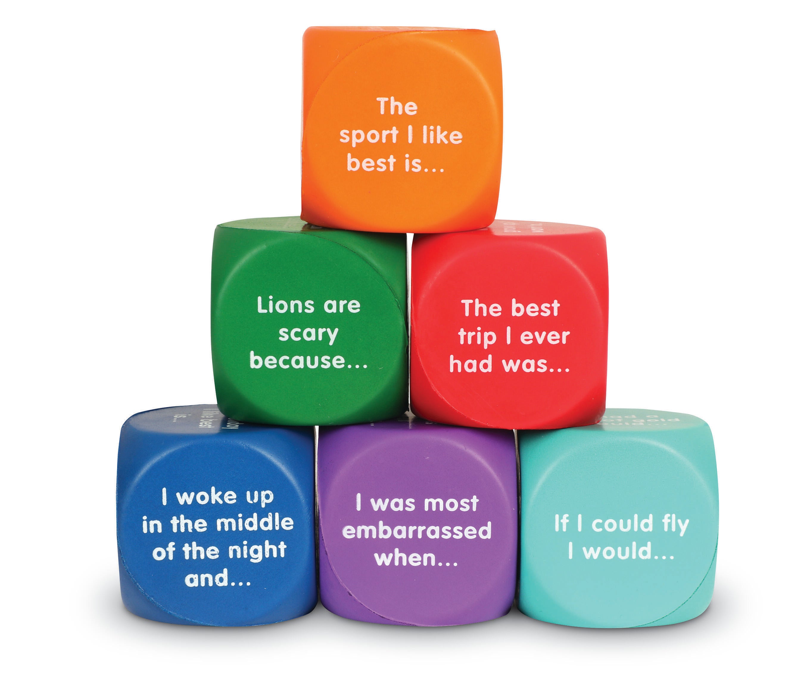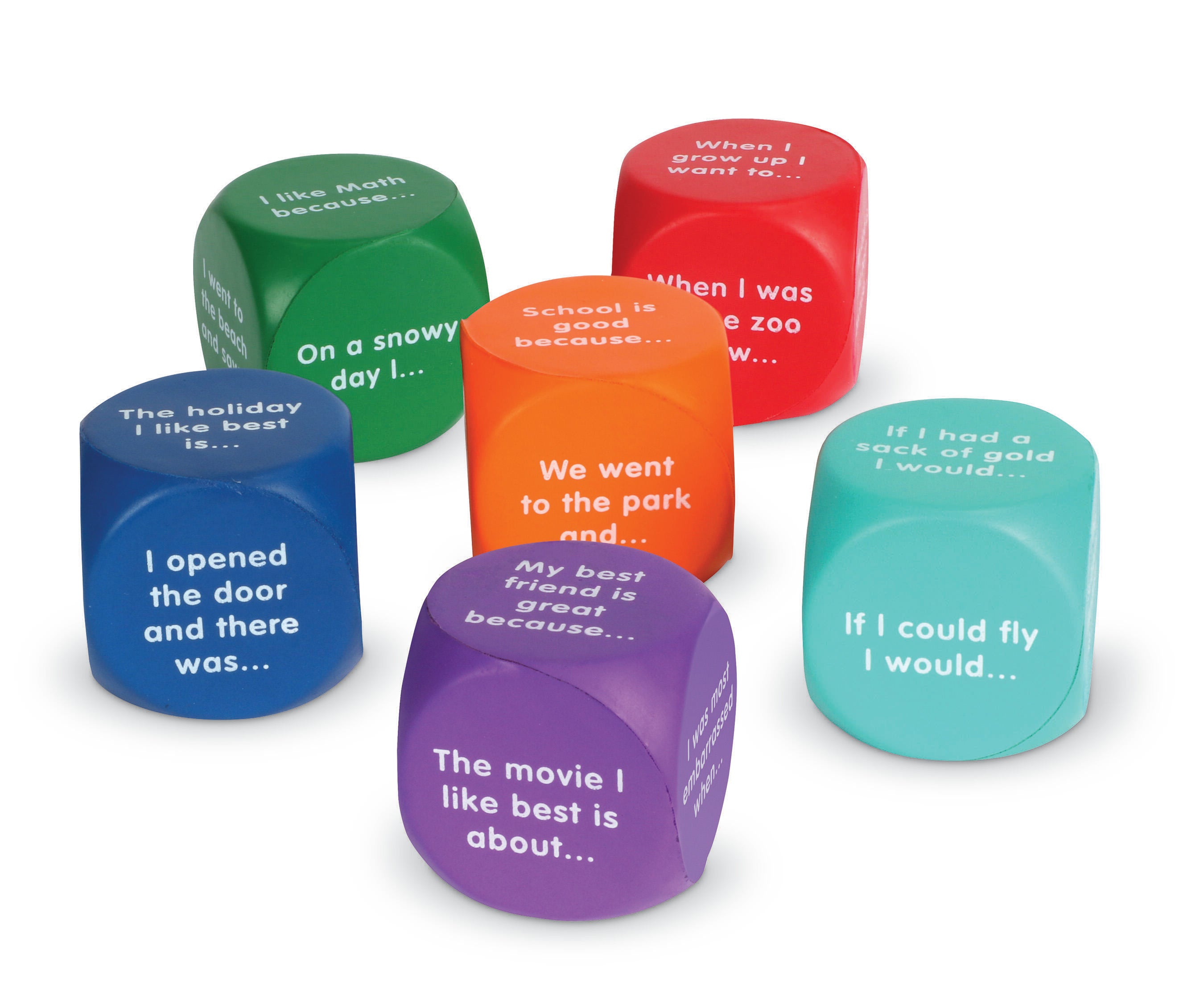 Learning Resources Writing Prompt Cubes help students brainstorm in both creative storytelling and informative writing activities. With 36 prompts, these foam cubes offer a variety of ideas for individual or group writing practice. The set includes 6 cubes and an activity guide. The soft foam cubes measure 1-5/8 inches. Recommended for ages 6 and up.Features