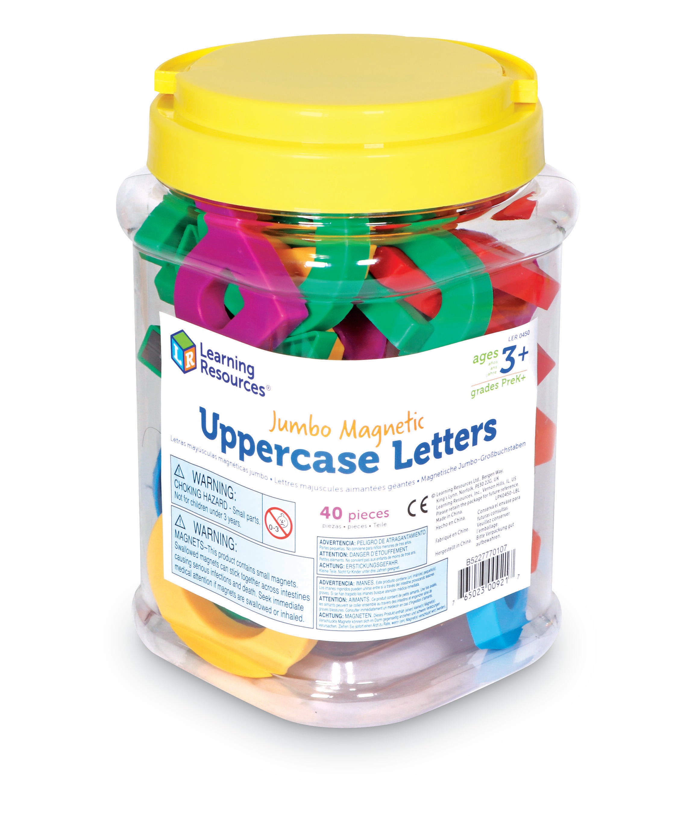 Learning Resources Magnetic Uppercase Letter Set is brightly colored, perfect for early learning language arts. A magnetic manipulative set contains 40 uppercase letters in multiple colors, and each is 2-1/2 inches in height. Provides an excellent addition to your home, classroom, or childcare center. Sold as 40 per set.