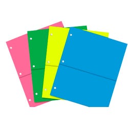 Binder pockets feature a pocket on each side, a great way to store things within your binder. Made from 65 lb recycled paper. Assorted Neon Colors include: pink, blue, gree, and yellow.