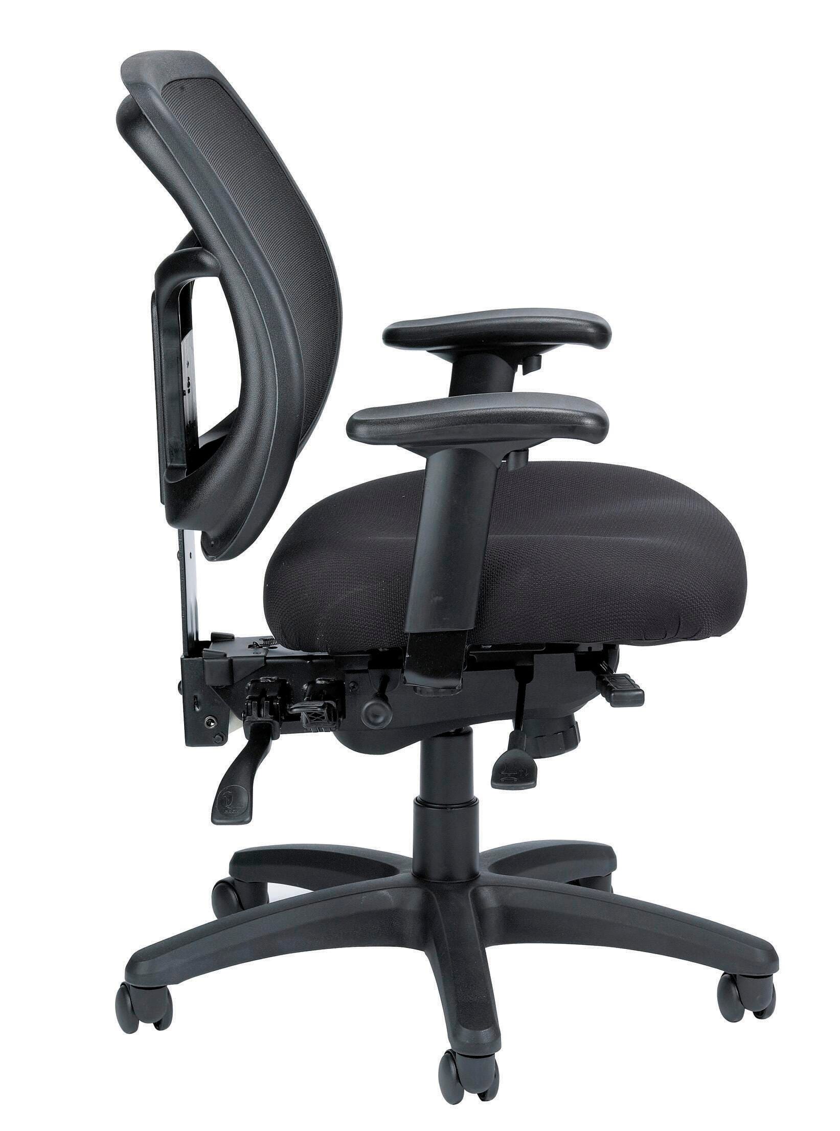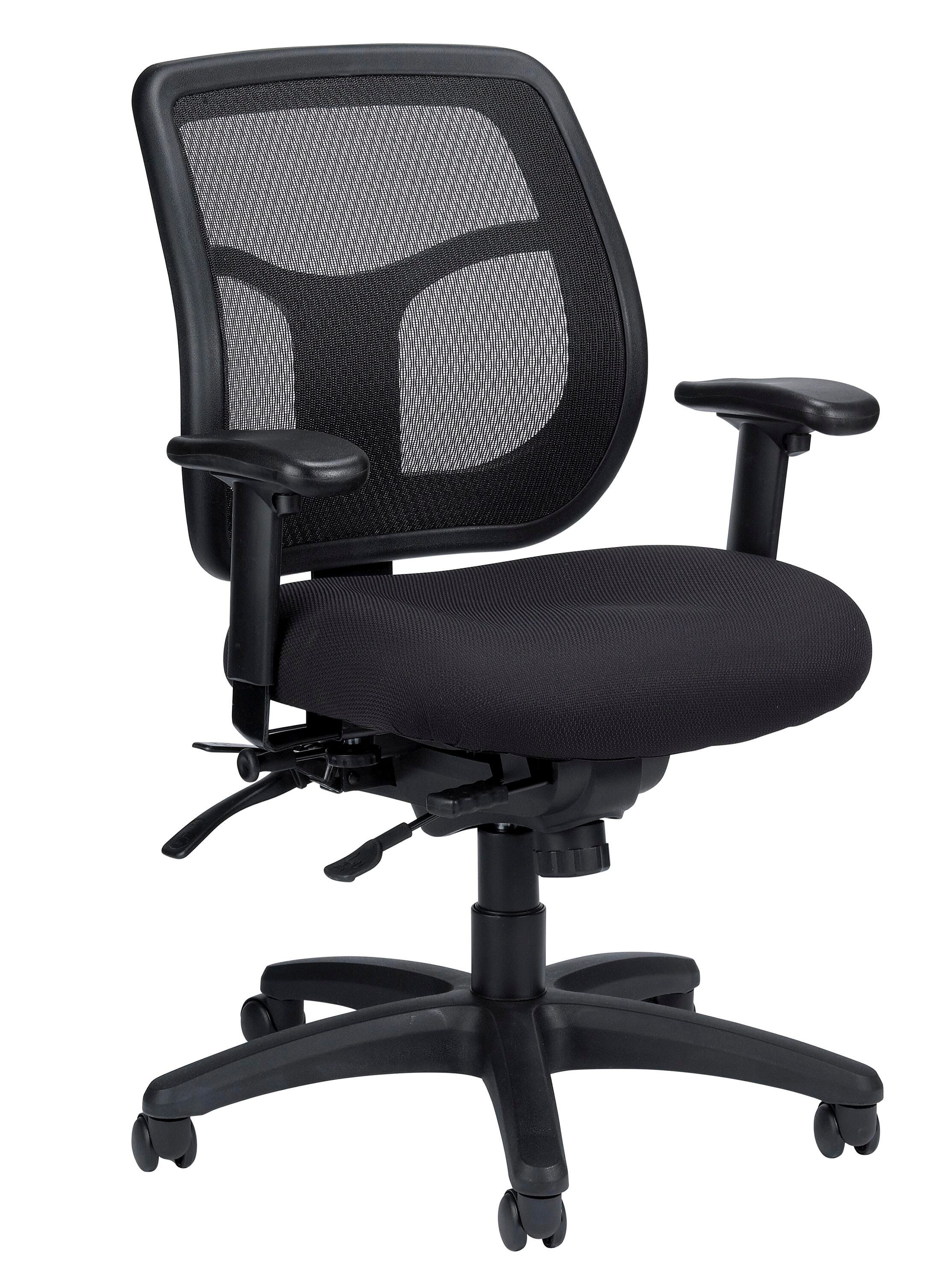 Apollo Black Mesh Back/Black Fabric Seat Executive Chair with Synchro Tilt, Seat Depth & Angle Adjustment, Back Angle Adjustment, Tilt Lock, Tilt Tension, Adjustable Arms. Everything a busy executive needs to work in comfort all day.