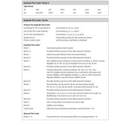 Softcover phonics workbook is recommended for Grades 1 to 4 (with included accommodations for English Language Learners and struggling readers). Enjoy the full Explode The Code Book series as desired (available in Books 1 to 6, each also with a 1/2 number for additional practice, and Books 7 and 8; each sold separately).