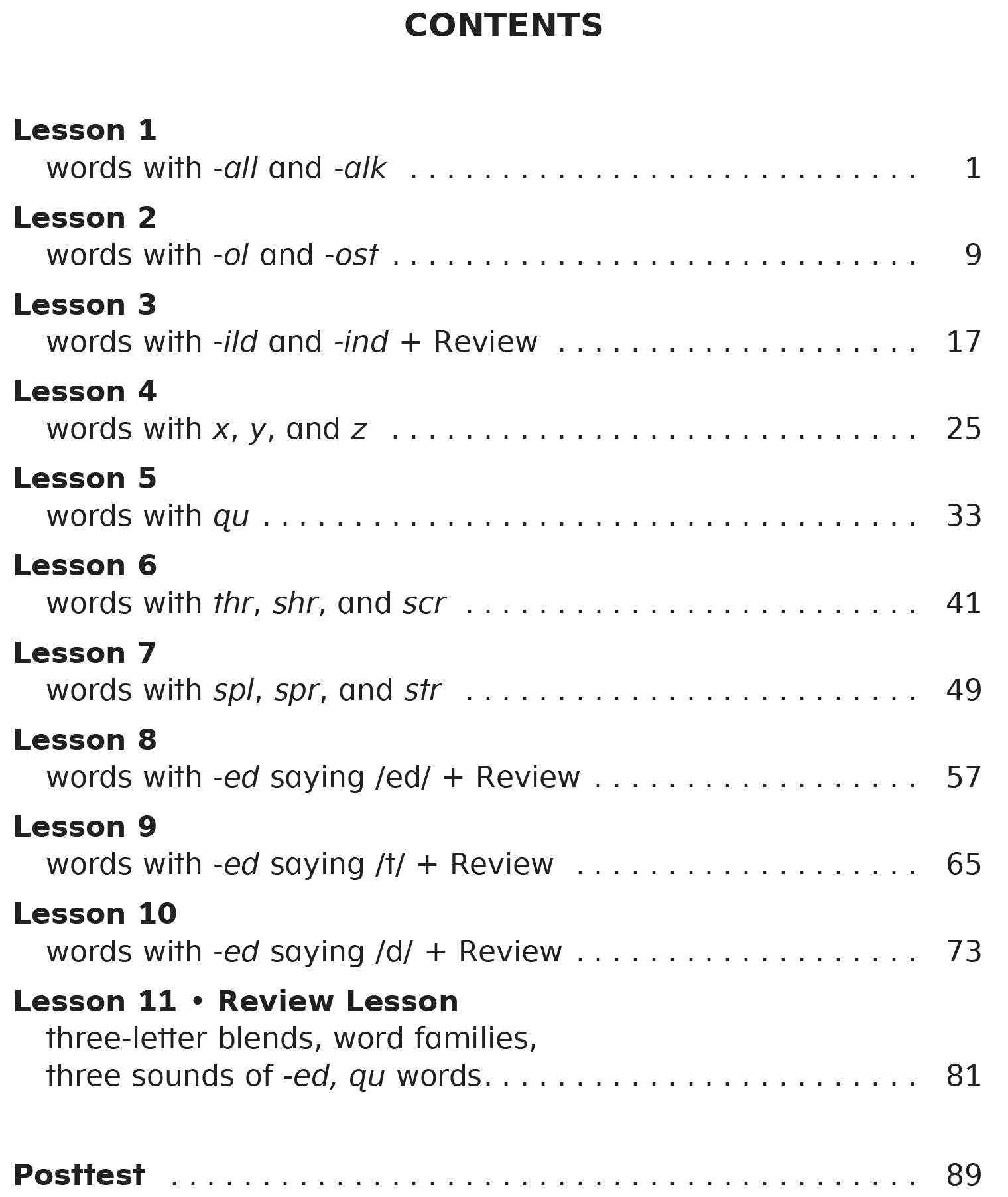 • Post-tests are found at the end of each workbook to assess student's phonics knowledge for at-home learning or literacy classroom curriculum