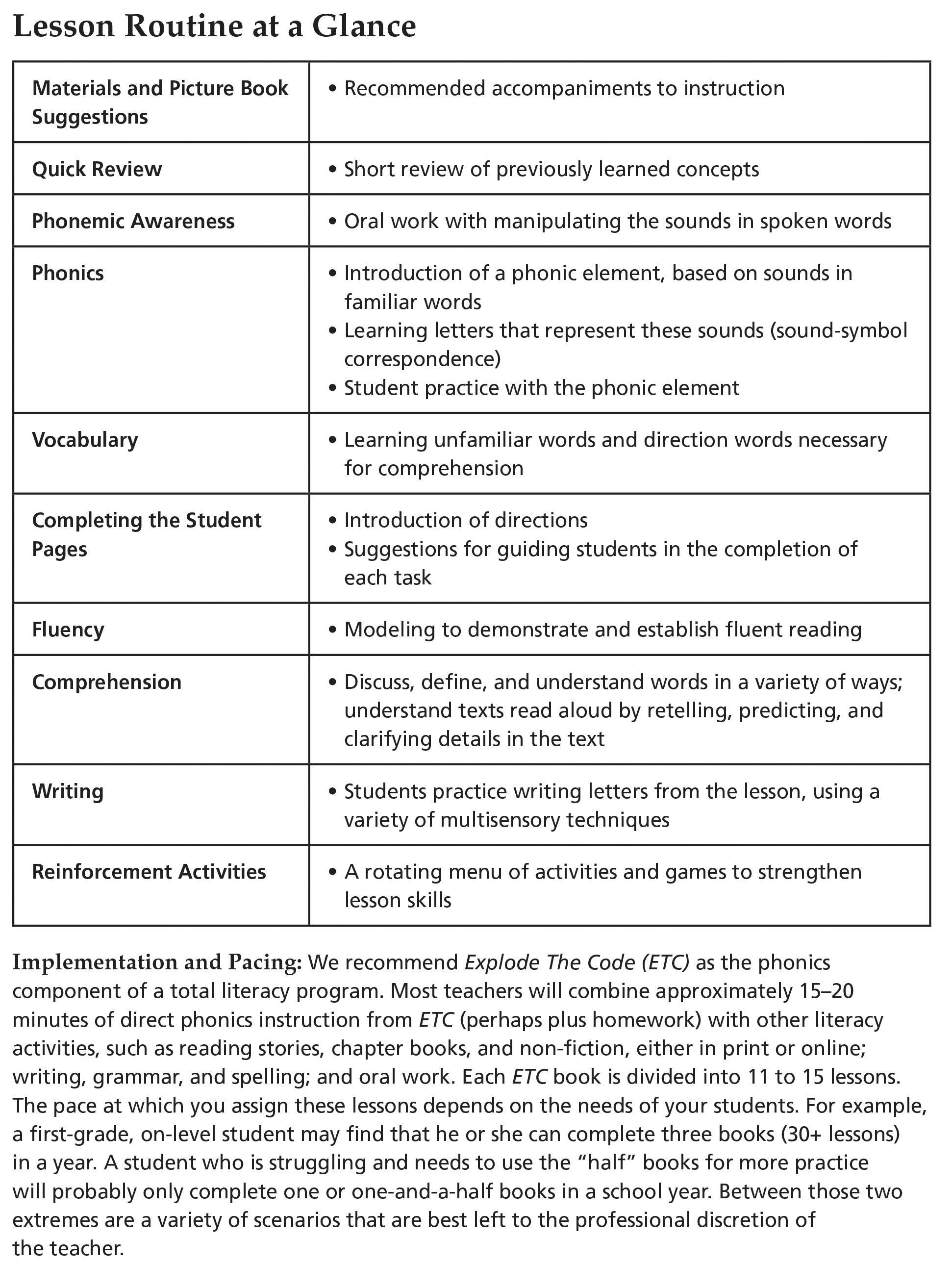 • A detailed "Lesson Routine at a Glance" chart is featured on the inside front cover