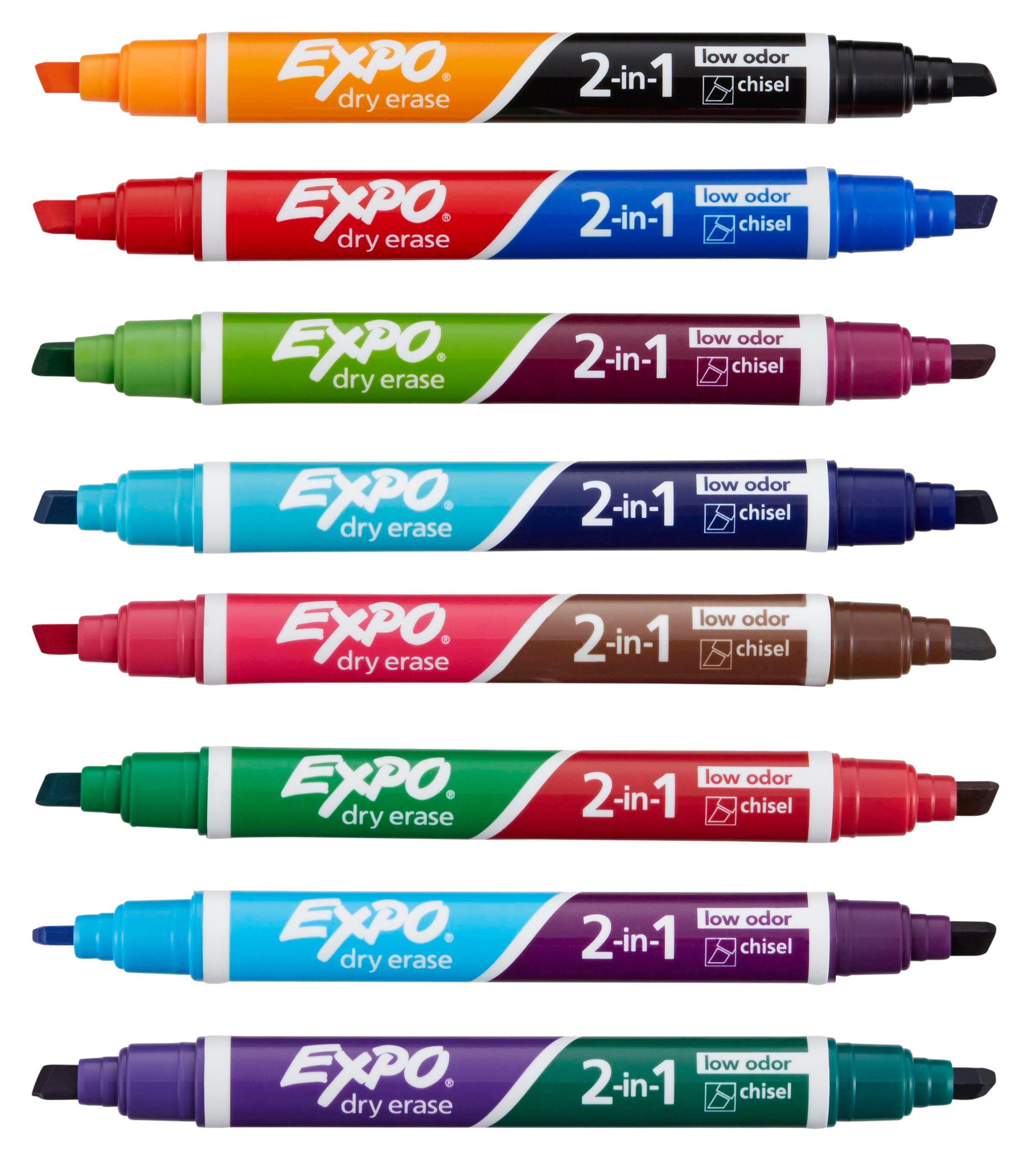 EXPO 2-in-1 Dry Erase Markers, Chisel Tip, Assorted Colors, Set of 8