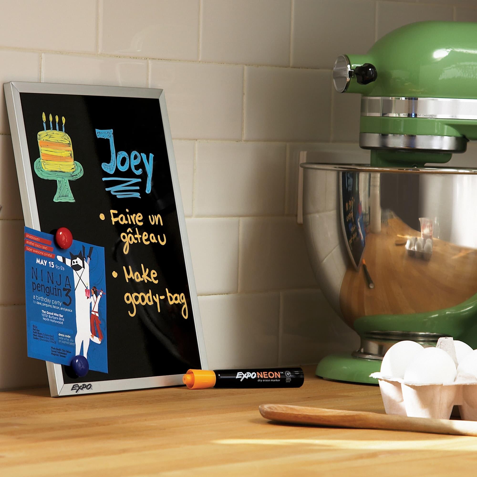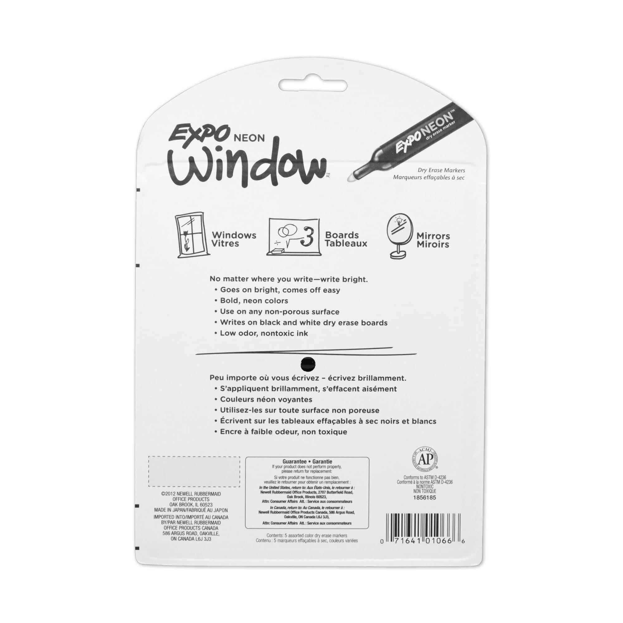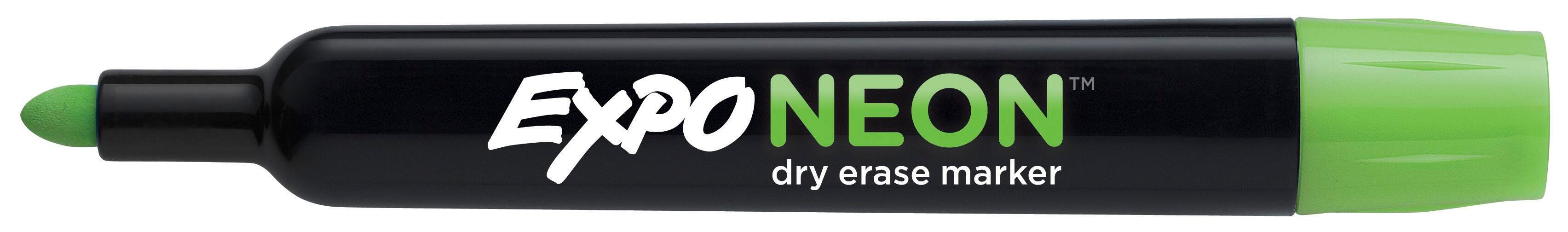These EXPO Neon Dry Erase Markers deliver fun and vibrant marks on whiteboards and dark dry-erase surfaces. They feature a sturdy bullet tip and a specially formulated low-odor ink that come together for bold, eye-catching marks that are visible from a distance. The markers are perfect for creating engaging and colorful displays in the classroom, office, or home. This assorted set of 5 contains the following colors: neon yellow, neon blue, neon green, neon orange and neon pink.