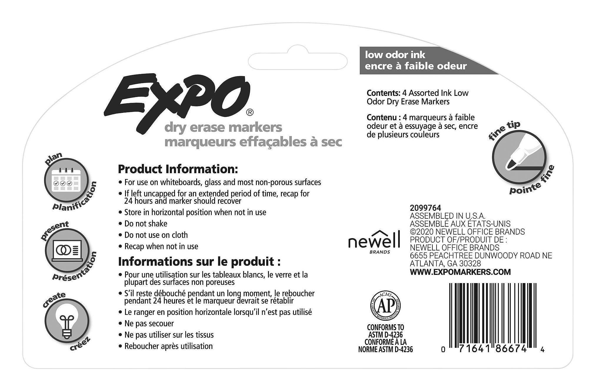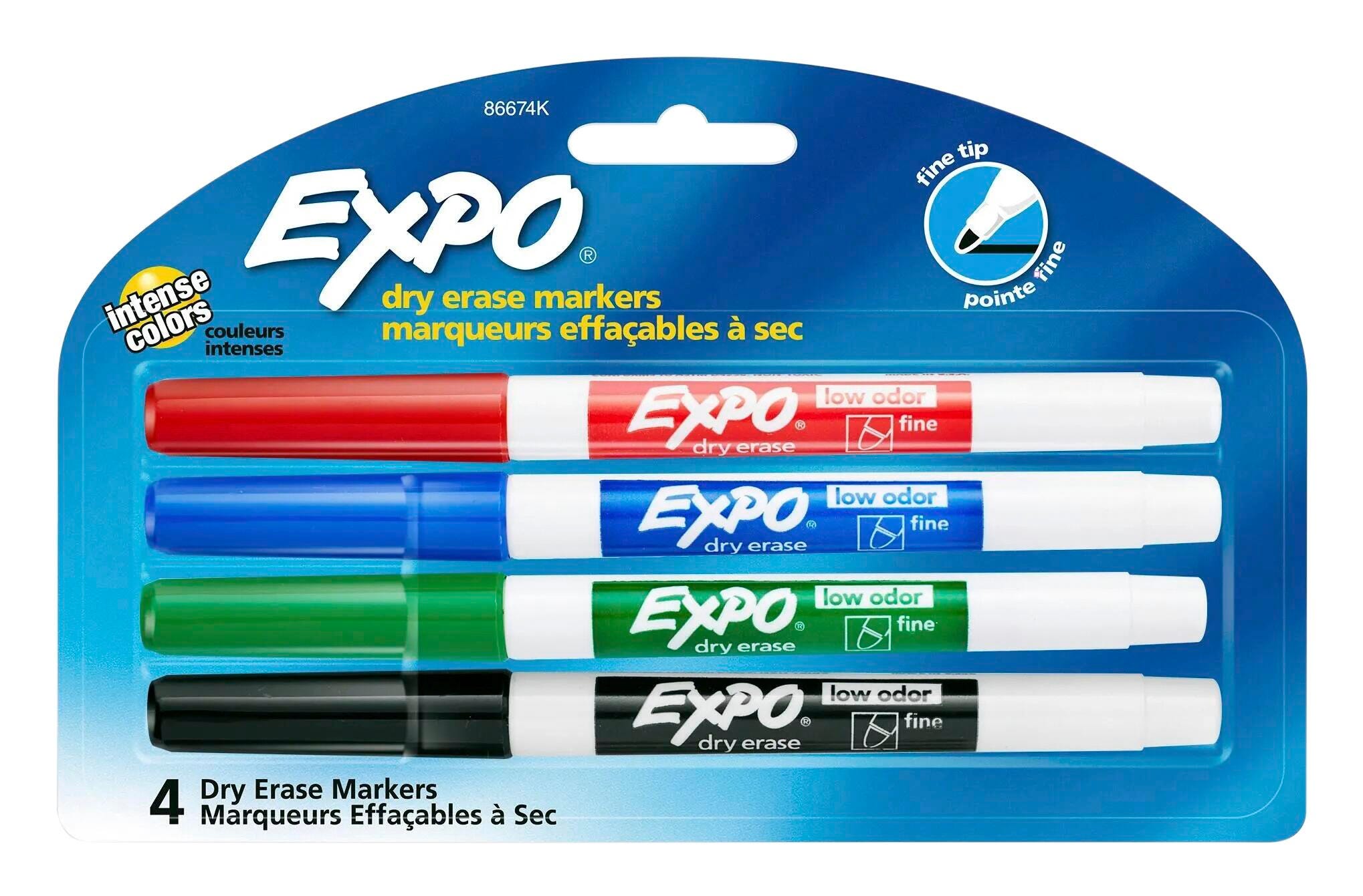EXPO Low Odor Dry Erase Markers, Fine Tip, Assorted Colors, Set of 4