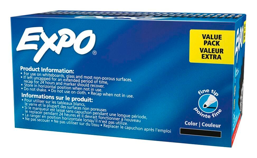 The EXPO Dry Erase Markers are excellent when utilized for brainstorming sessions, better organization, and effective communication. The fine tip gives you precise, consistent lines that ensure your writing is easy to see. The specially formulated ink has virtually no odor, erases easily from most nonporous surfaces, and is bold enough to see from a distance. These EXPO markers are an ideal solution in the classroom, office, or home.