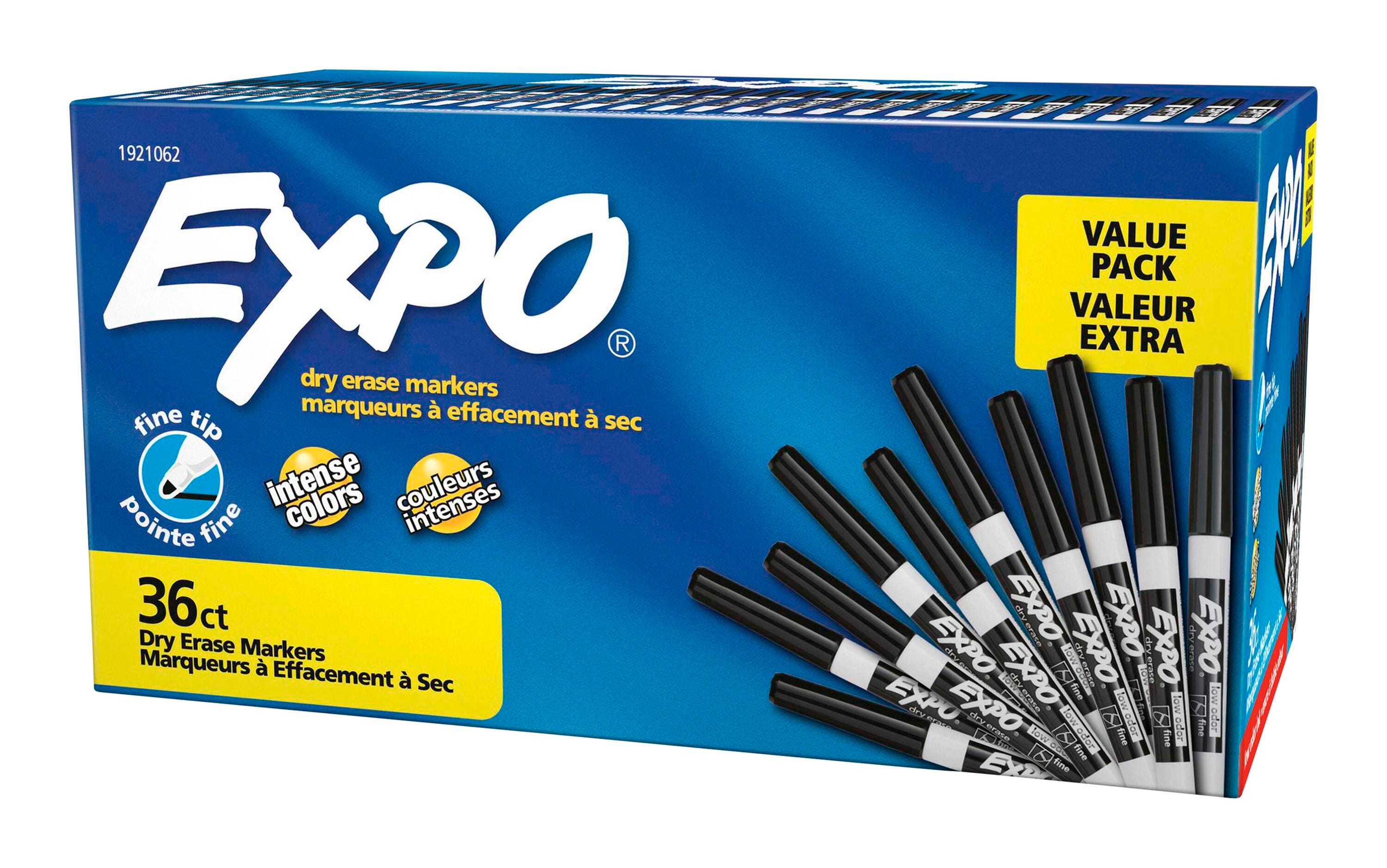 • EXPO Low Odor Dry Erase Markers, Fine Tip, Black, Pack of 36