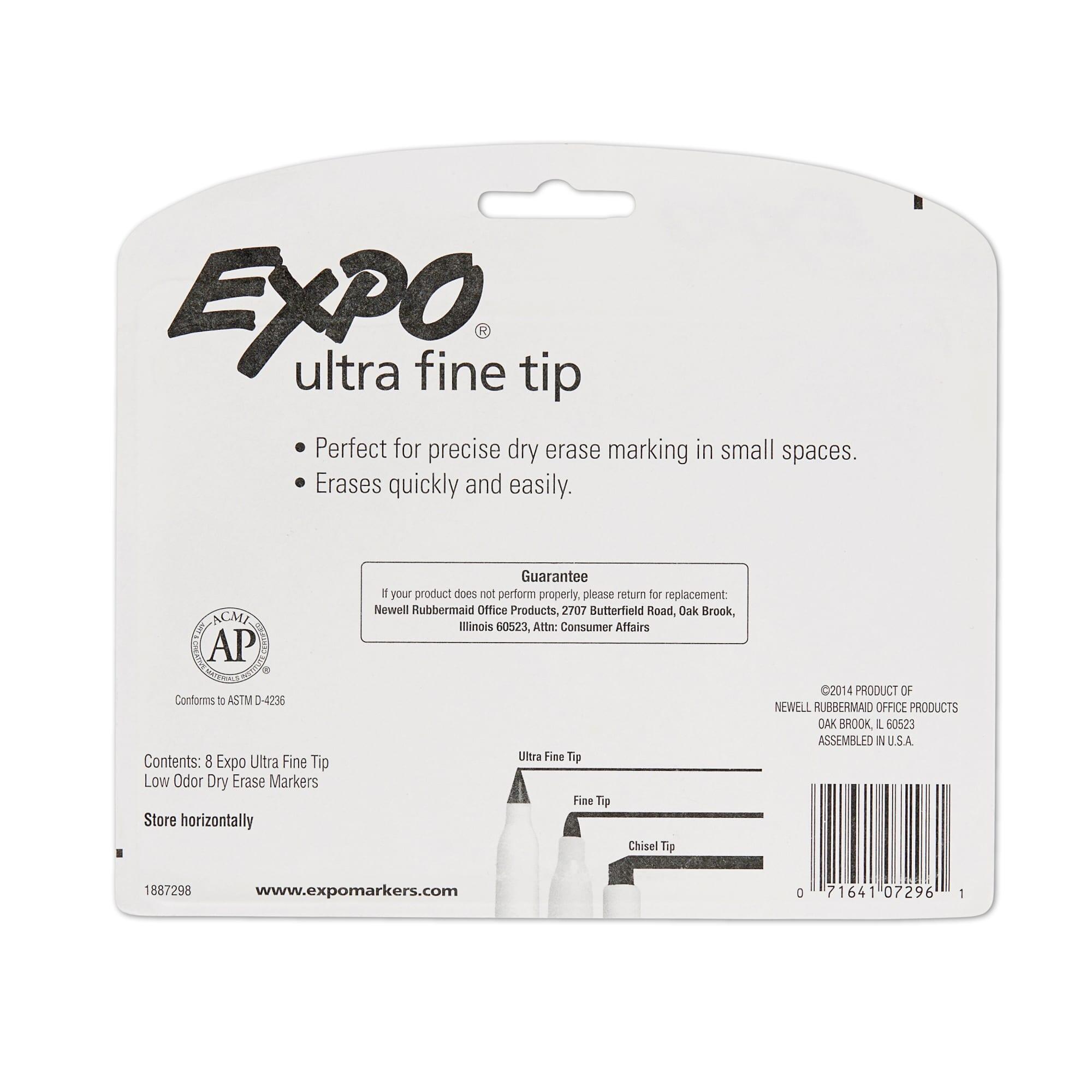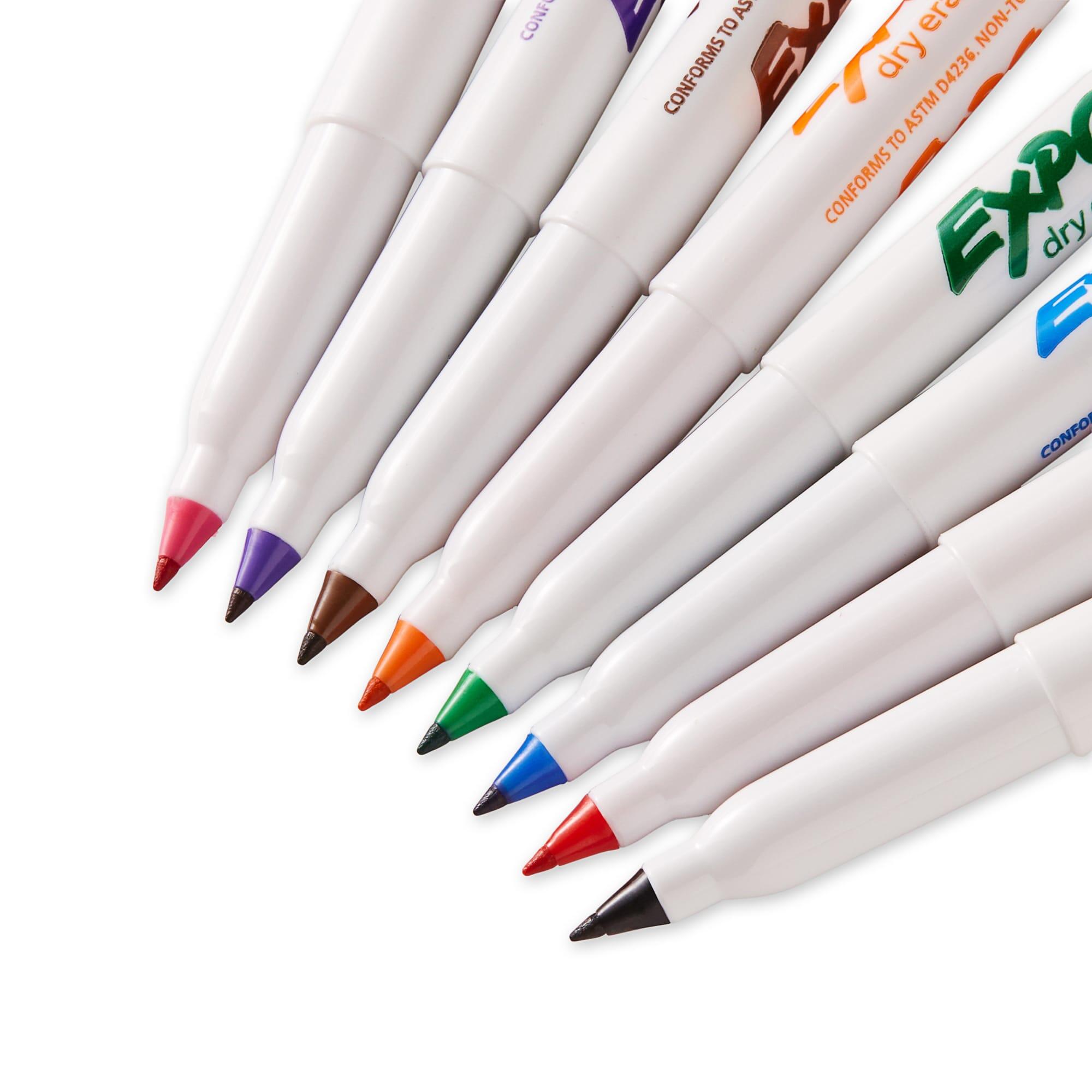 The Low Odor Dry Erase Markers from EXPO are an ideal solution for whiteboard visuals like project trackers, schedules, presentations, and more. These markers have an ultra-fine point that is perfect for writing accurately in small spaces and vivid ink that is easily erased from whiteboards, glass, and nonporous surfaces. This set of 8 includes the colors black, red, blue, green, pink, purple, brown, and orange.
