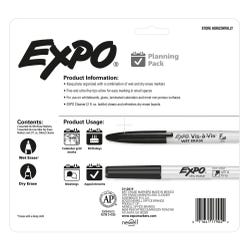 Keep track of appointments, meeting notes, or important dates with the EXPO Markers Planning Pack. With two types of markers and cleaning spray, this kit delivers everything you need to stay organized in the classroom, office, or home. The fine and ultra-fine tips on the markers make creating detailed marks a breeze, even in small spaces. This pack includes 2 Vis-à-Vis Wet Erase Markers, 5 Low Odor Dry Erase Markers, and one 2 ounce bottle of whiteboard cleaning spray.Features