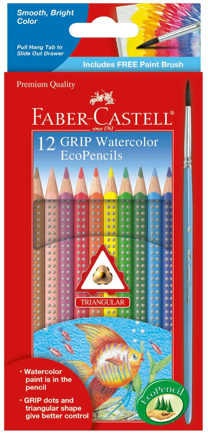 Faber-Castell Grip Watercolor EcoPencils, Assorted Colors, Set of 12