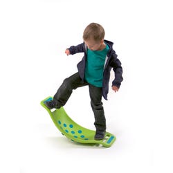 Fat Brain Toys Teeter Popper is a fun instrument for play... how it's used is up to the child! Whether they rock it, roll it, sit in it or stand... children want to move with Teeter Popper! Children find themselves teetering on the brink of perfect physical play. No special skills needed. In playful exploration, Teeter Popper improves core strength, stability, leg strength, balance, coordination and gross-motor skills. Measures 28 in L x 11-1/2 in W x 7-1/2 in D. Weight limit: 110 lbs. Green color with blue accents. Ages 3 and Above.Features