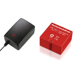 Charger and battery pack in one. Battery charger with micro controller for reliable protection from overcharge. Perfect for powering fischertechnik mobile robots. Very short recharging time, max 2 hours. High-powered NiMH Accu Pack with short-circuit protection, 8.4V/1500 mAH.