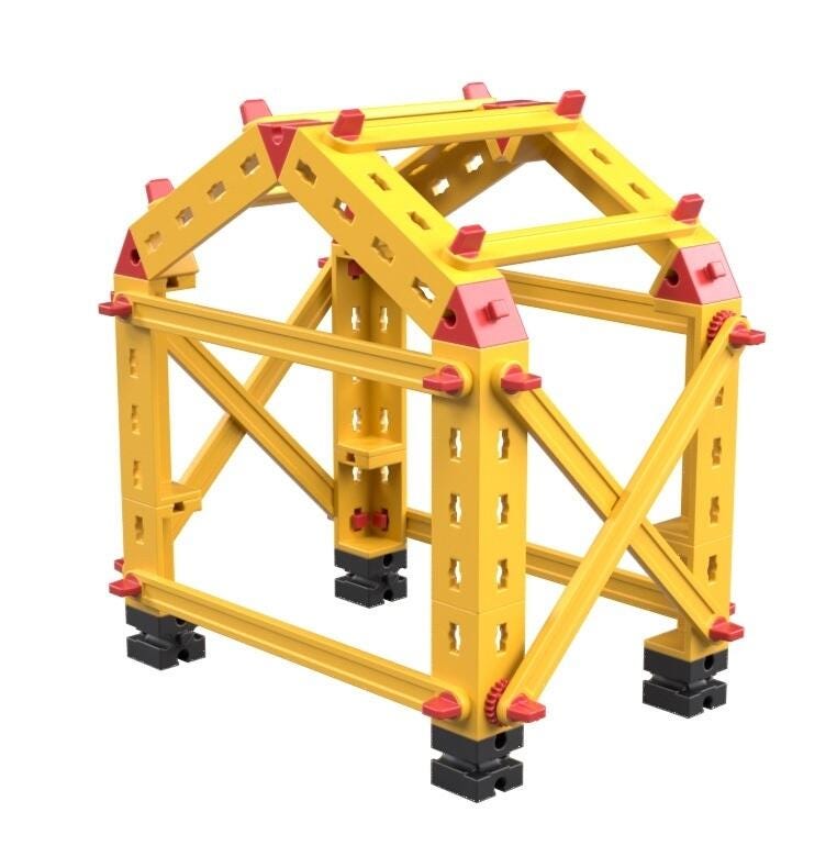 How can a house survive a storm unscathed and why don't cranes fall over? The designers of tomorrow are exploring these questions and many others like them. They are exploring the stability and strength of technical structures and discovering the relationships between load-bearing capacity and connecting elements. Each set contains 16 identical trays of 204 parts for building 8 instructional models. 3264 parts in all.