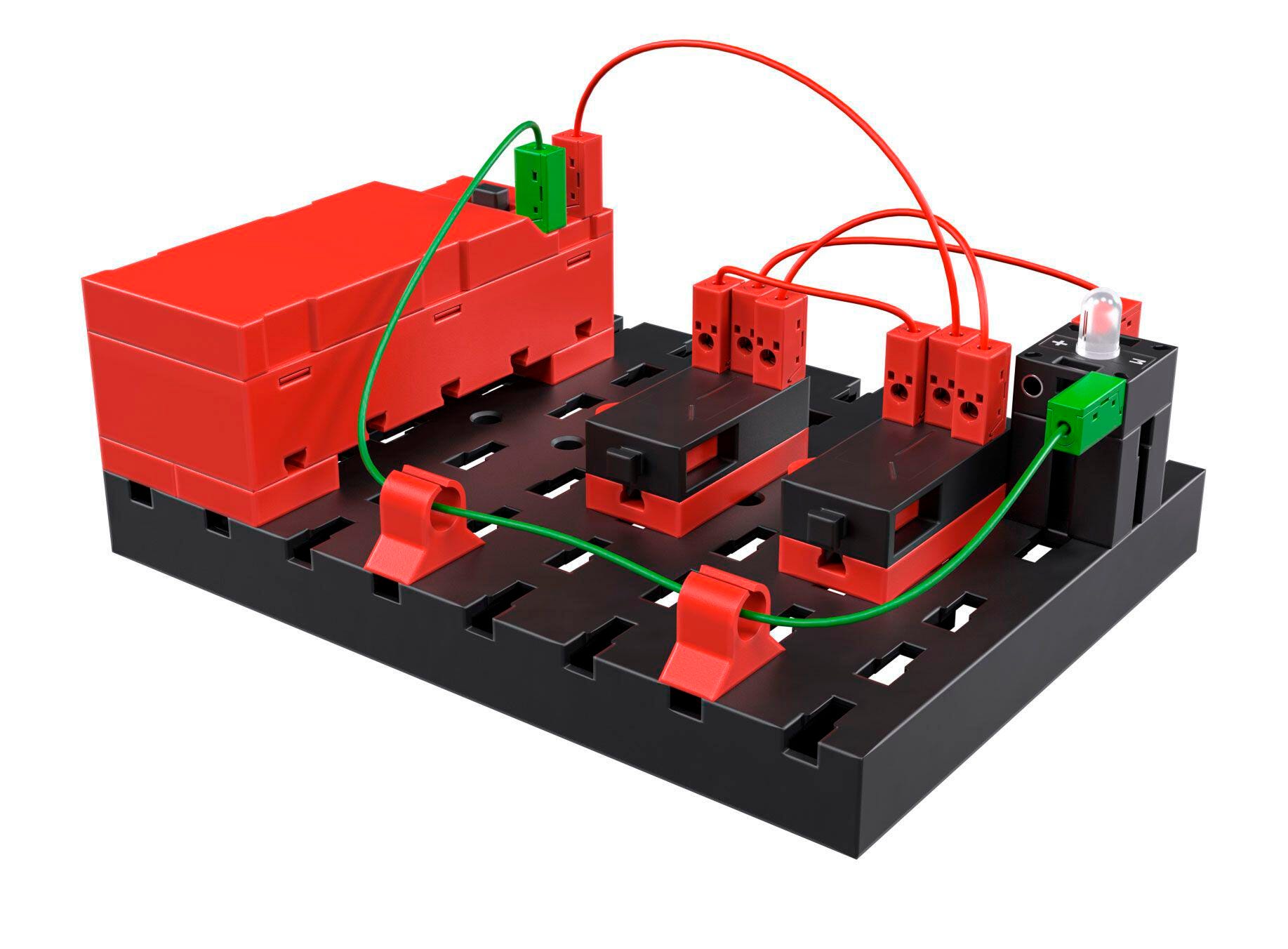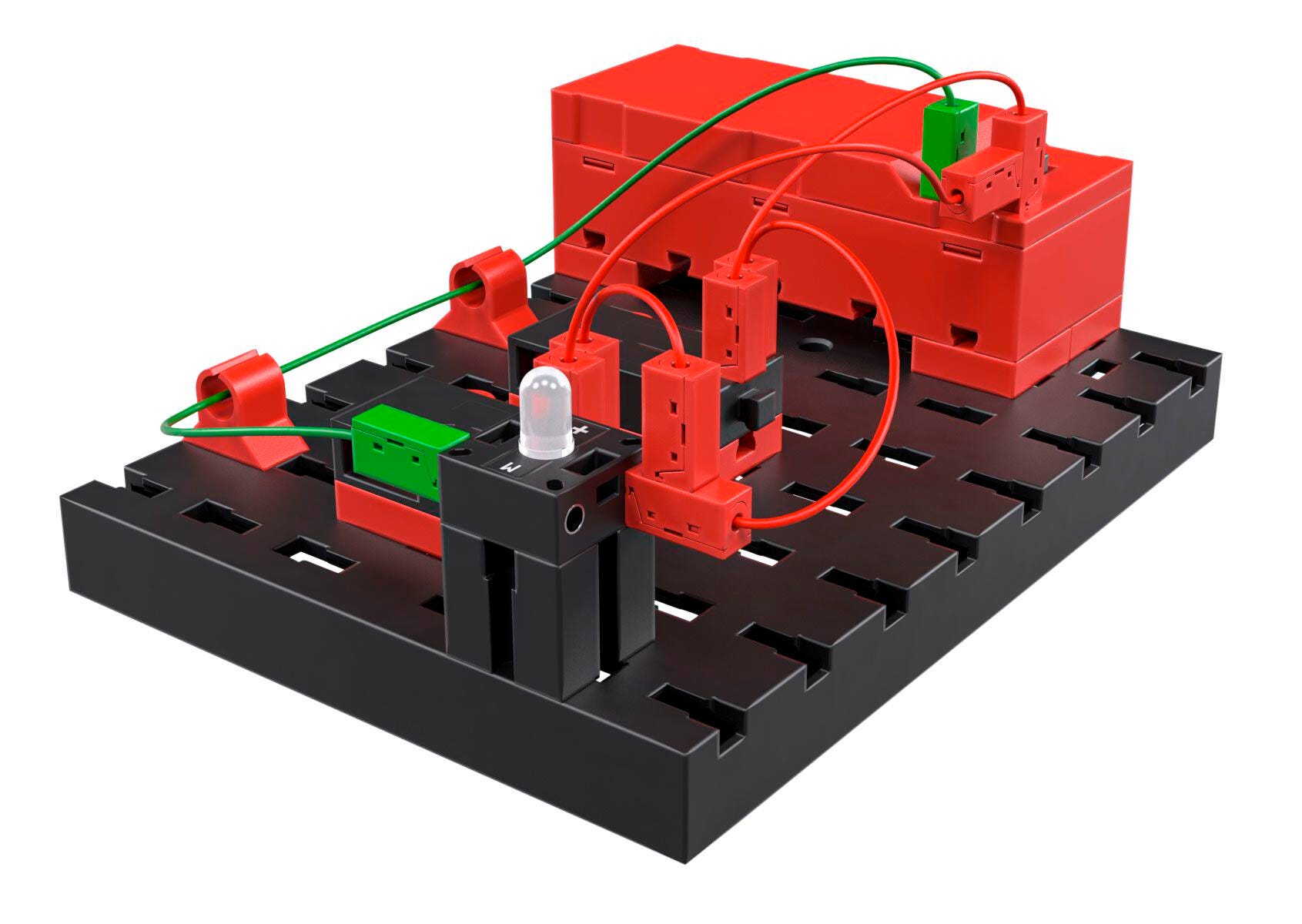 How does the staircases light turn on? Why does it go on at the bottom, and back off again at the top? Young students can learn the answers to these and other questions in an engaging and fun way through the CLASS SET Electrical Control. The set teaches all about electrical circuits using simple applications in a way kids can easily understand. The models are easy to build in the classroom and integrate with fully designed tasks and solutions. Set contains collection of 16 individual trays of parts (recommended: 15 student units, 1 teacher unit). Each tray of parts can be used by 1 to 2 students at a time, depending upon teacher preference. All 16 trays come packed in two sturdy fischertechnik Box 1000 storage units, with baseplate lid.