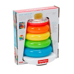 The Fisher-Price Rock-a-Stack toy is classic, colorful fun for your little one! Younger babies will love grasping, holding, shaking and exploring the five colorful rings. The littlest ring has a shiny, reflective surface for baby to discover inside with colorful, swirling beads that make fun rattle sounds! When they are ready to sit and stack, babies can place the rings on the post, then bat at the wobbly base to make it rock back and forth. Stacking helps them develop hand-eye coordination and introduces them to the concept of relative size as they learn to sort and stack from the biggest to smallest!Features