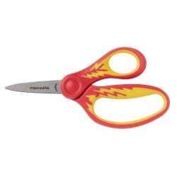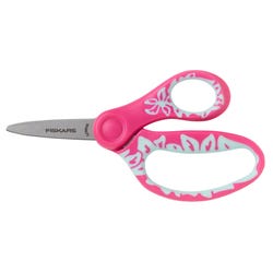 Fiskars Softgrip Left-handed Kids' Scissors make cutting fun and frustration-free for left-handed children. The softgrip handle and large finger and thumb loops provide a natural, more comfortable fit for kids' fingers. Pointed tip allows for excellent cutting control while the innovative safety-edge blade keeps kids safe. Length of blad measures 5 inches. Designed for ages 4 and up. Scissor comes in a randomized assorted color (sorry, no color choice).Features