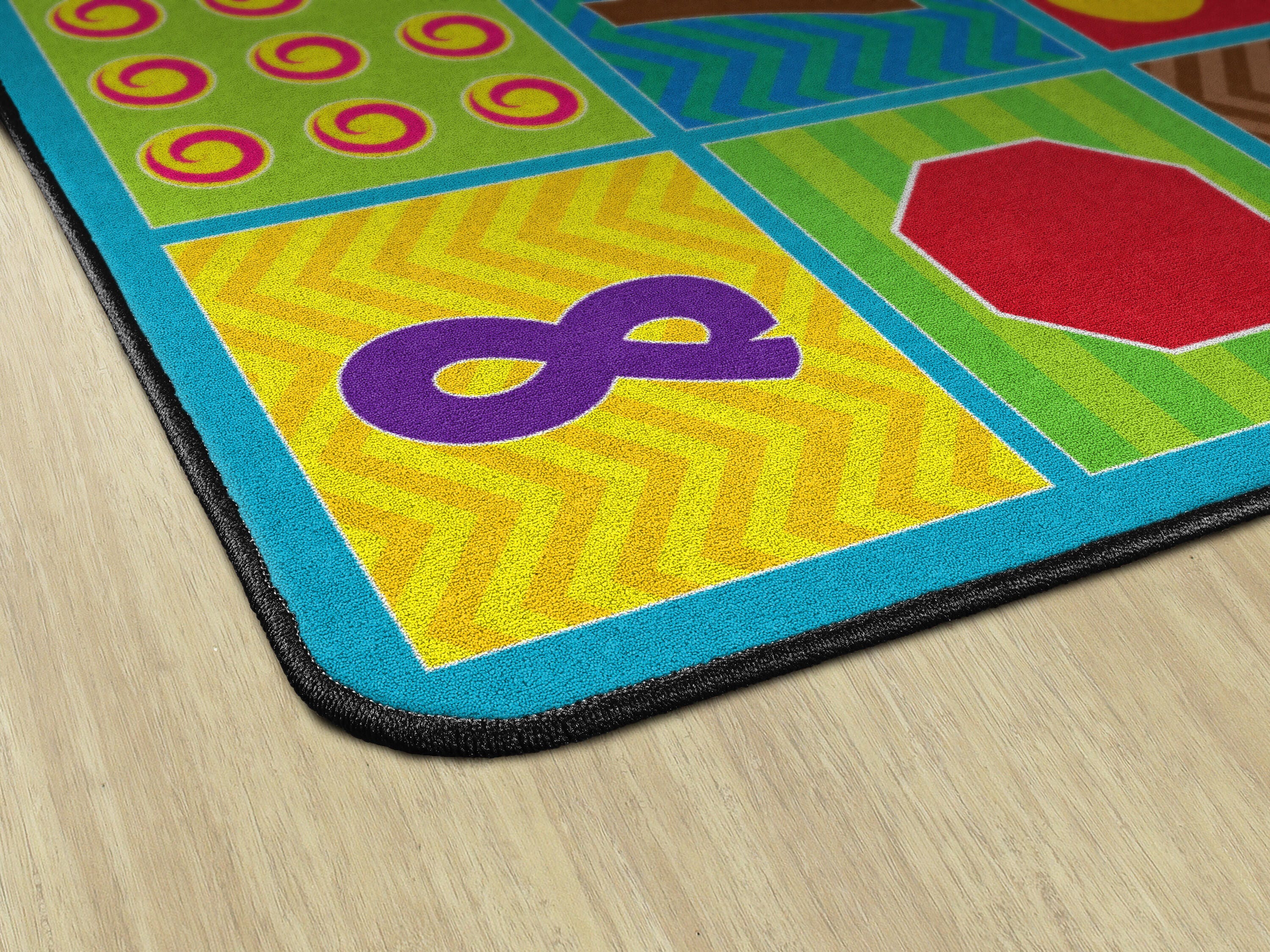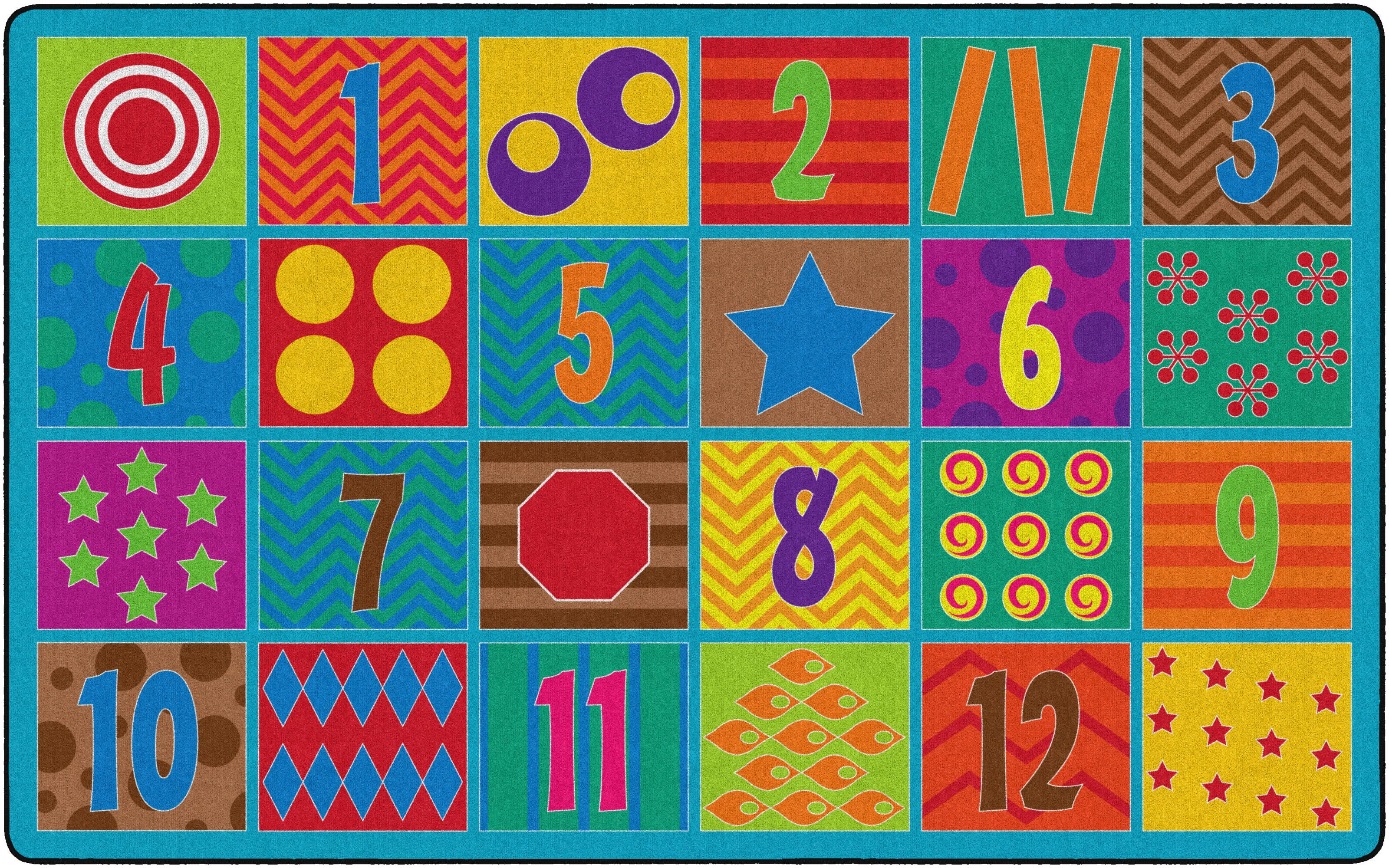 The Counting Fun educational carpet makes counting from 1-10 easy with helpful shapes to match each number. This bright carpet is designed with seating squares for classroom organization. Rectangle rug available in several sizes.
